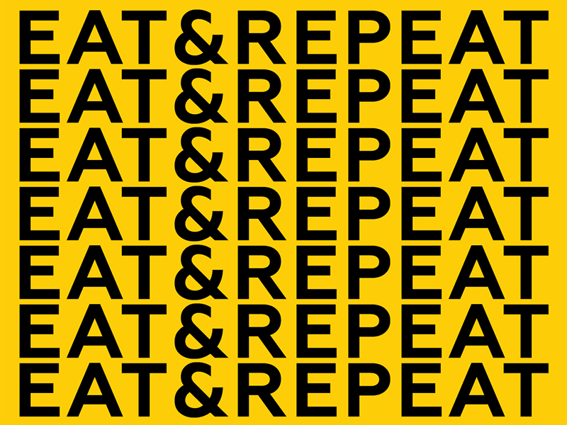 Слоган бренда — eat & repeat. В презентационном ролике мы выразили основную мысль такого позиционирования — ешь, повторяй, снова ешь. Возвращайся, не забывай про нас, мы всегда под рукой, мы быстрые и качественные.